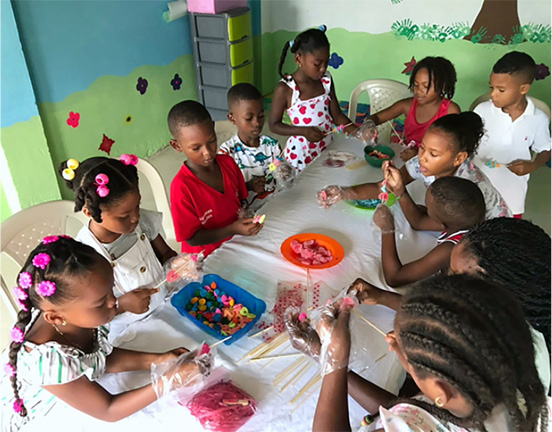 Niños de 8 a 12 años de estratos 0,1,2, así como adolescentes de 13 a 21 años y adultos de estos mismos estratos. Trabajamos en alianza con organizaciones locales.